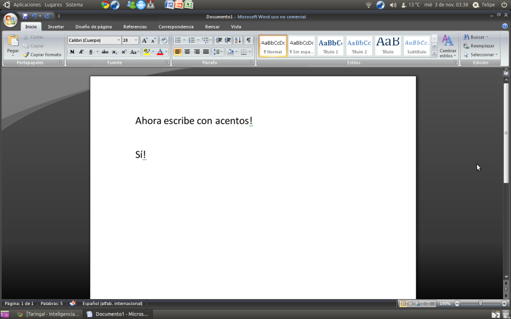 Listo!!! Ahora podemos escribir áéíóú!!!